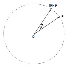 As illustrated, the vector P is rotated by rotational number [θ] and becomes the vector [θ]P.